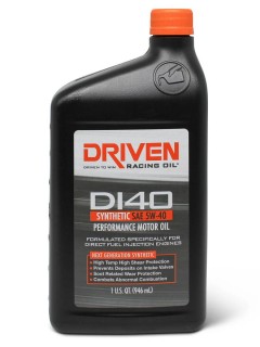 Containing a proprietary additive package to combat abnormal combustion issues, as well as soot related problems, Driven's DI40 should be used in any direct injection engine that calls for 0W-40 motor oil, such as the GM LT5 and Porsche DFI engines. Viscosity typical of 0W-40.